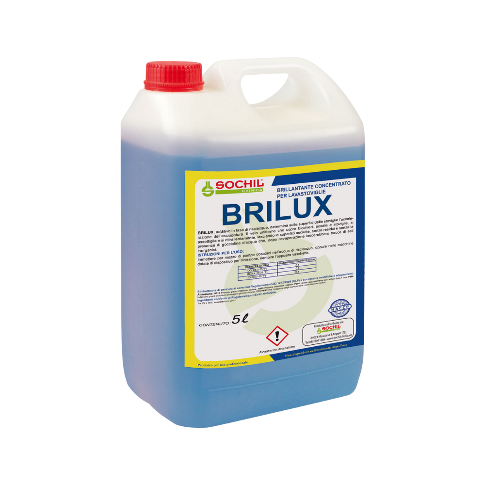 Il BRILUX, additivo in fase di risciacquo, determina sulle superfici delle stoviglie l’accelerazione dell’asciugatura.